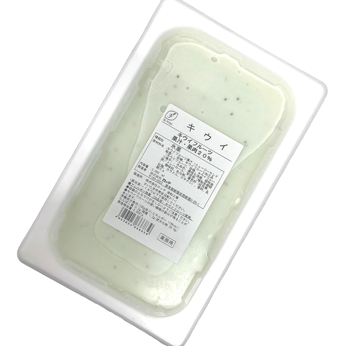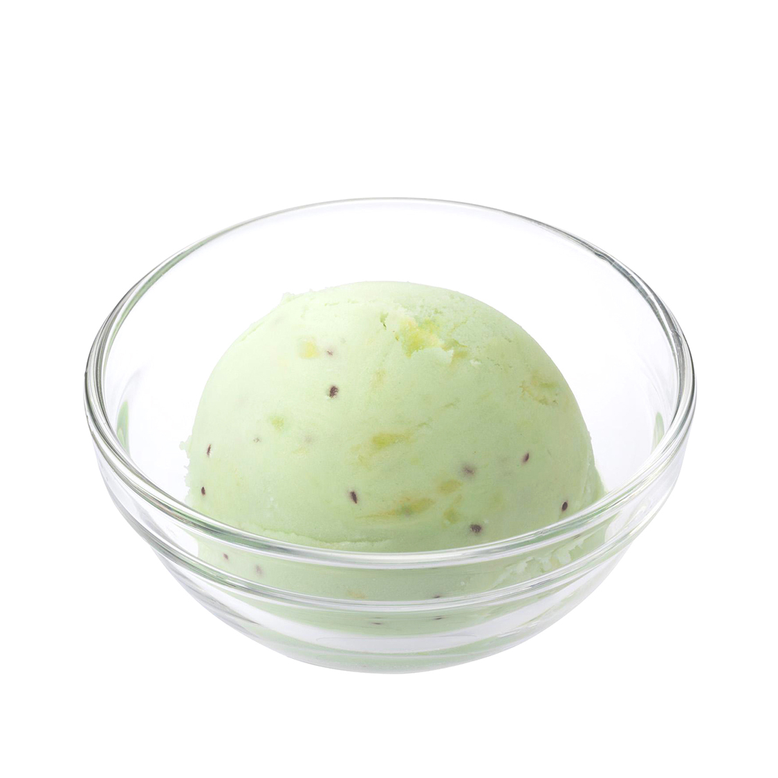 キウイの果肉果汁を20%使用した、爽やかな酸味と果肉の食感が楽しめるシャーベット。