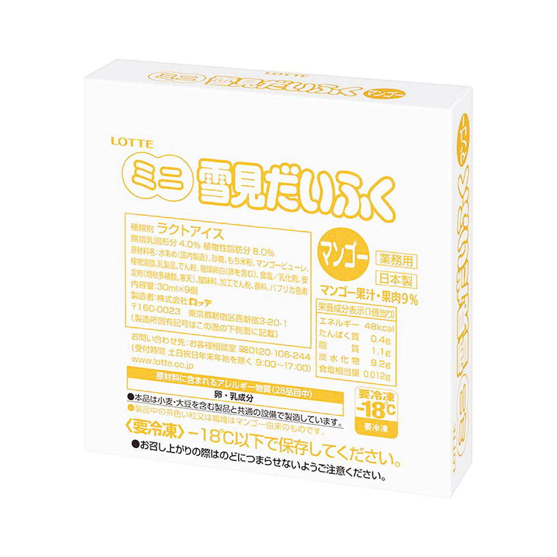 ロッテ・業務用ミニ雪見だいふく マンゴー 30ml×9個 ×8パック