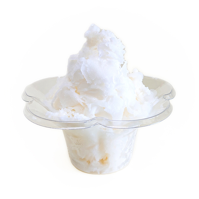 濃厚でおいしい牛乳として知られている、鳥取県大山の「白バラ牛乳(大山乳業農業協同組合)」を使ったミルク氷は、そのままでももちろん、多彩なトッピングメニューのベースかき氷としてもご利用いただけるミルクフレーバーです。