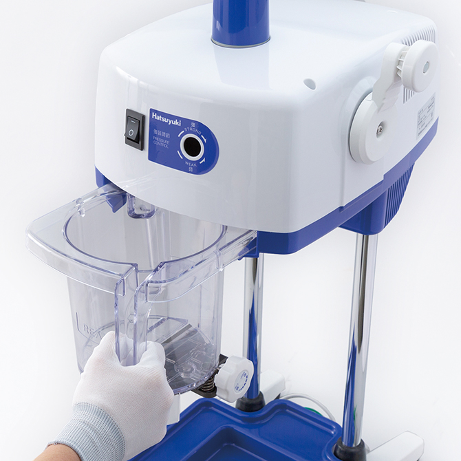 カートリッジ式アイスシェイバーHD-70AA・マルチスライサー用の刃物つきカートリッジ。ミルク氷を削ってイチゴ氷も削る・・・などの連続使用でも、ケースの交換で味移りの心配なく削ることができます。