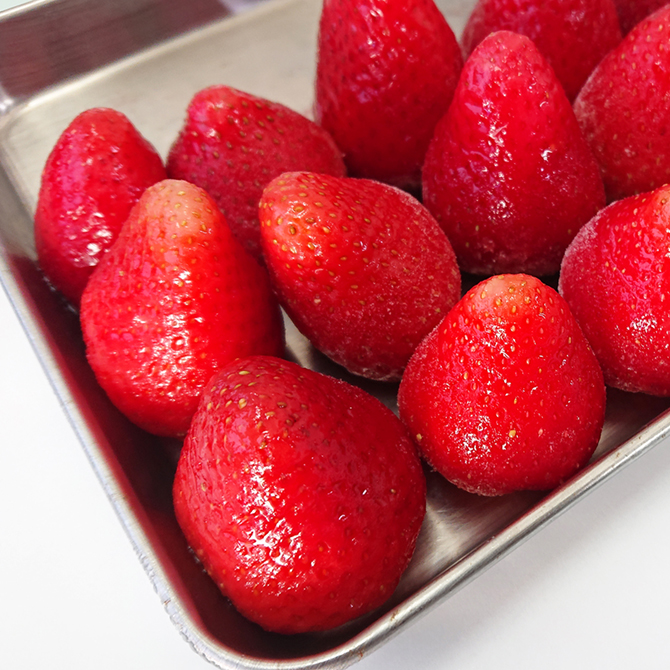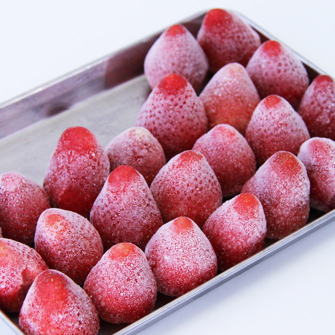 中まで赤くて大粒なモロッコ産いちごは、いちごとしては少し硬めの食感でありながら、甘さも十分に感じられます。