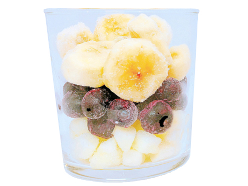 厳選された完熟冷凍フルーツの「ブルーベリー」「バナナ」「リンゴ」の組み合わせ。