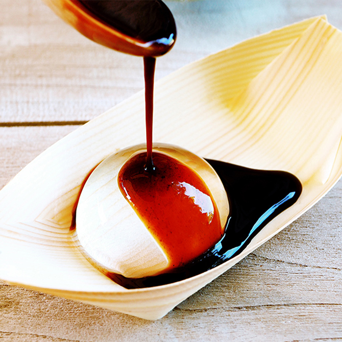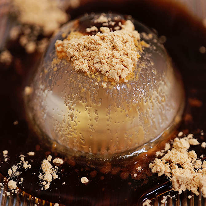 シロップに浸かった新食感、水わらびもちにトレンディーな新たな”かたち”。