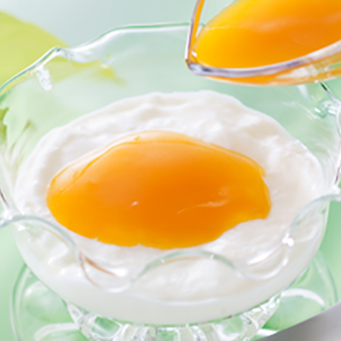 マンゴーの王様「アルフォンソマンゴー」の風味豊かなピューレがたっぷり入ったフルーツソース
