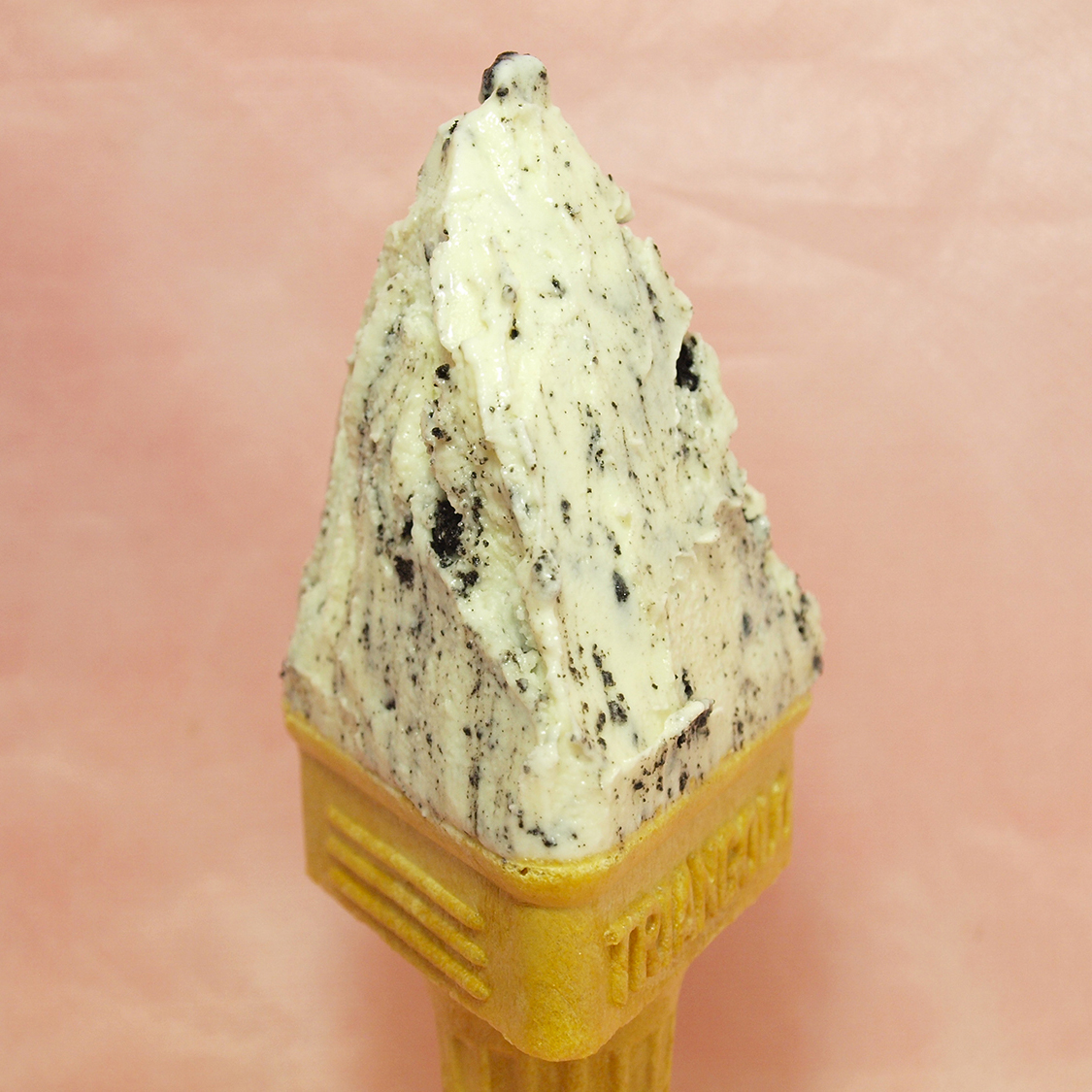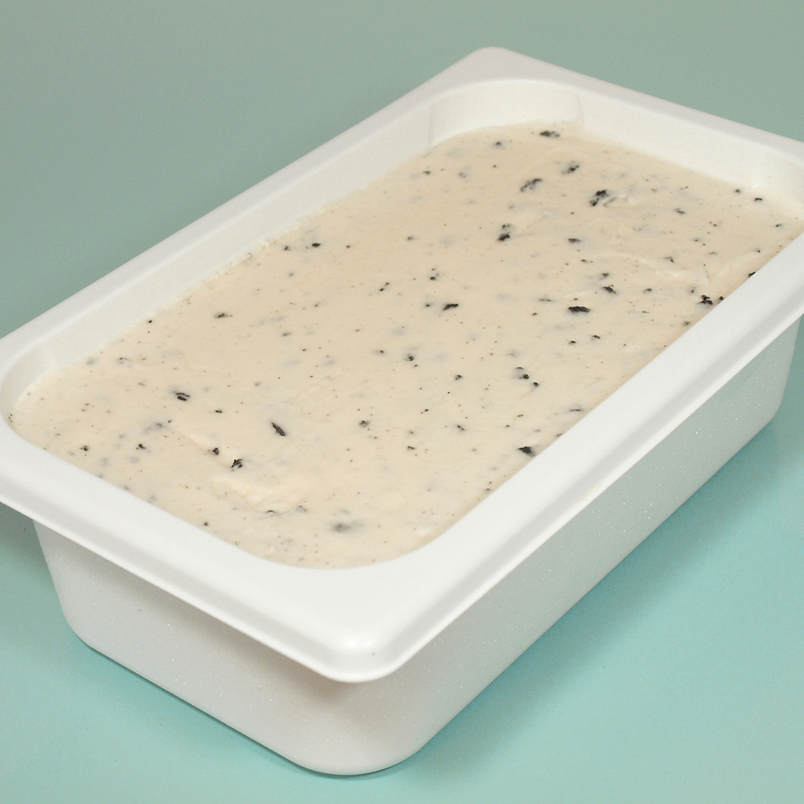 シンプルなミルクジェラートにブラックチョコのビスケットが入った、楽しい食感のジェラート。