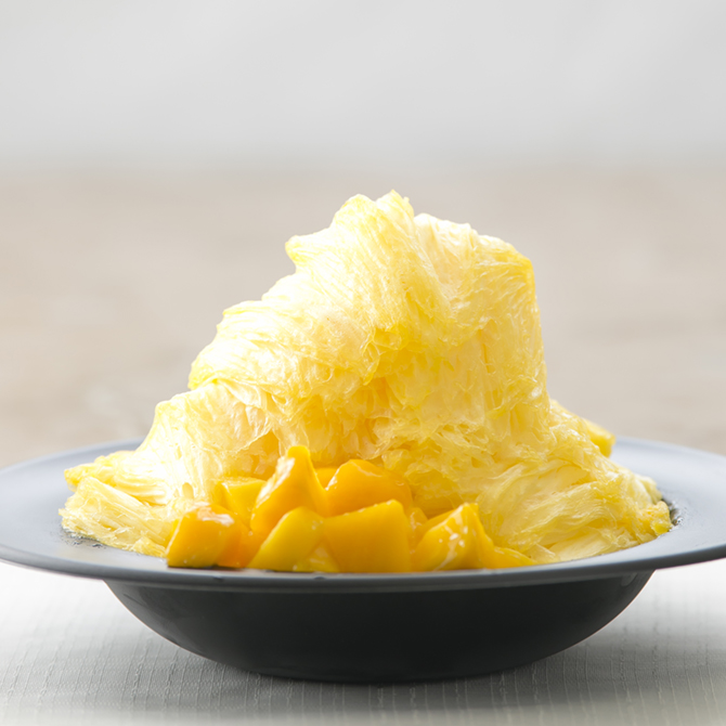 径が広いお皿型なので、大きく盛るかき氷やトッピングがしやすく、台湾風かき氷のテイクアウト用にとても使いやすいプレートタイプ。
