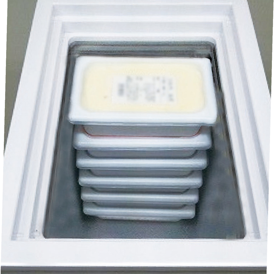 業務用バルクアイスが効率よく収納できるフリーザー。収納しやすい庫内フラット設計のプラスチックスライド扉タイプフリーザー。