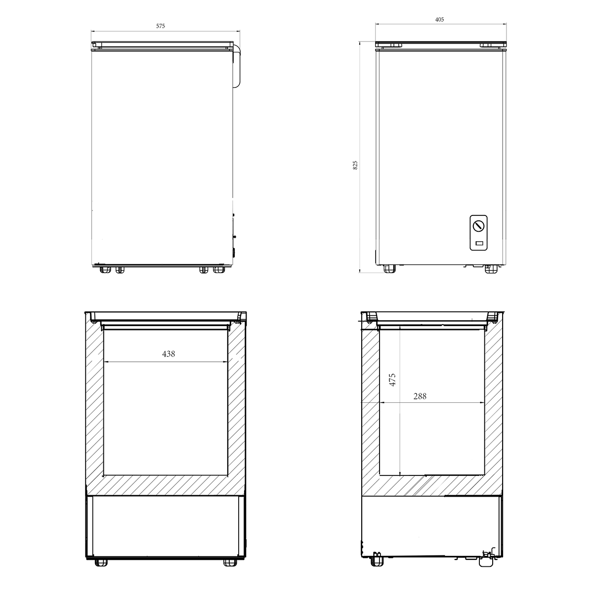 収納しやすい庫内フラット設計の上開きタイプフリーザーで、プリコートアルミニウム仕様の庫内、金属製ヒンジで丈夫な設計。ドレン、キャスター付。