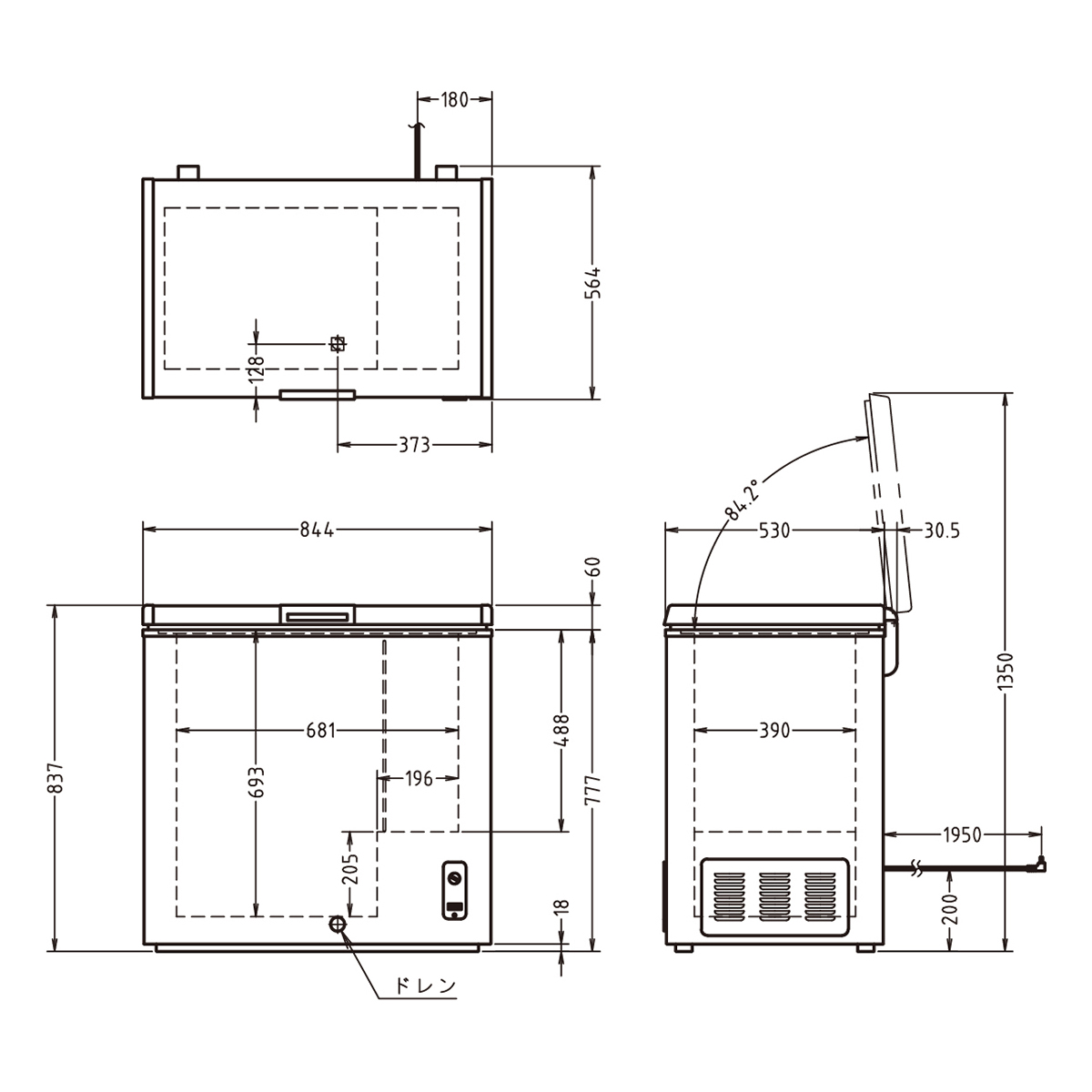 収納しやすい庫内フラット設計の上開きタイプフリーザーで、プリコートアルミニウム仕様の庫内、金属製ヒンジで丈夫な設計。