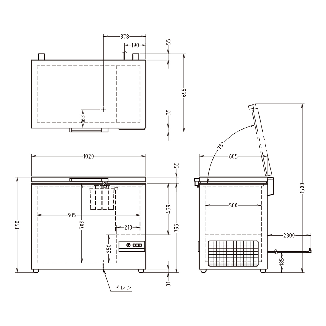 収納しやすい庫内フラット設計の上開きタイプフリーザーで、プリコートアルミニウム仕様の庫内、金属製ヒンジで丈夫な設計。