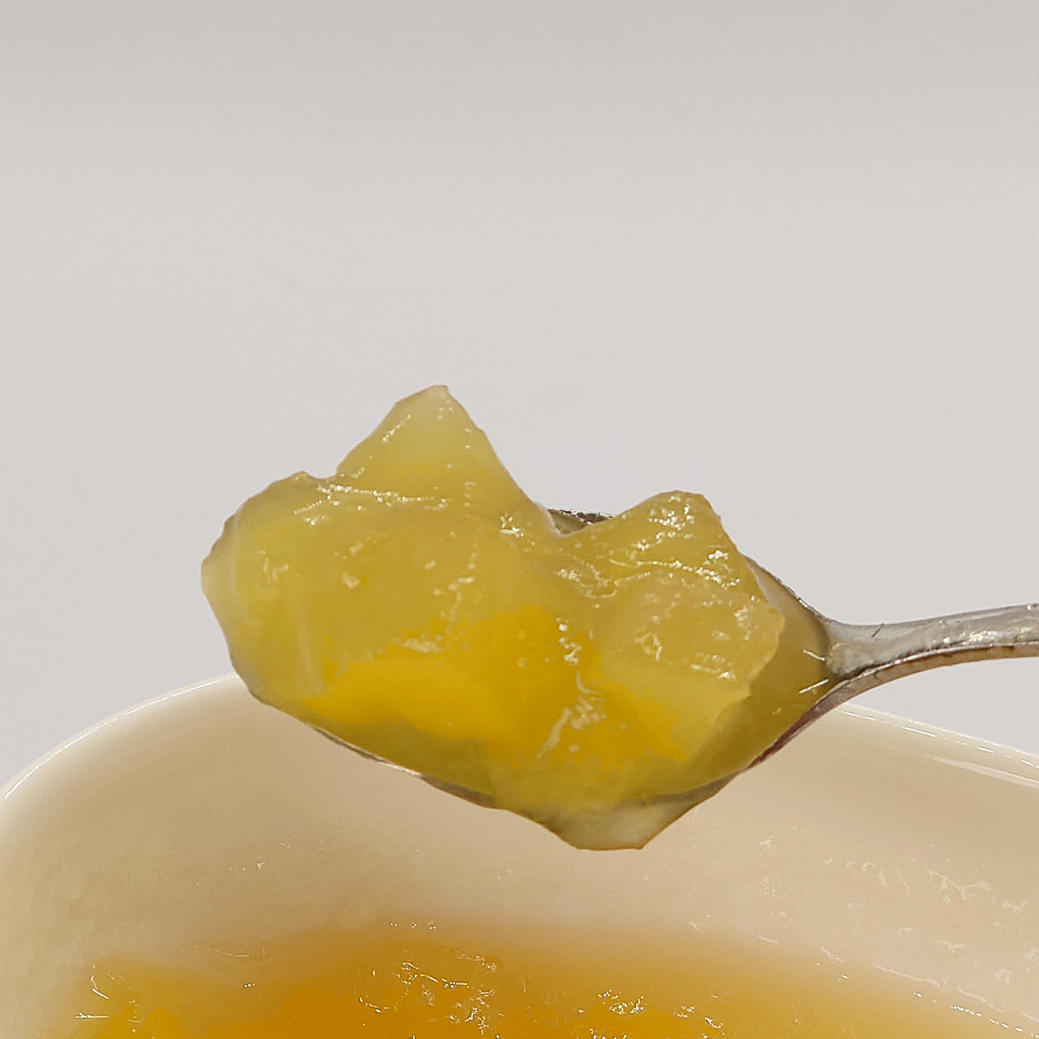 果肉がごろっと入ったりんごソース。低糖度でフルーツ本来の風味を味わえる果肉入りの冷凍フルーツソースです。