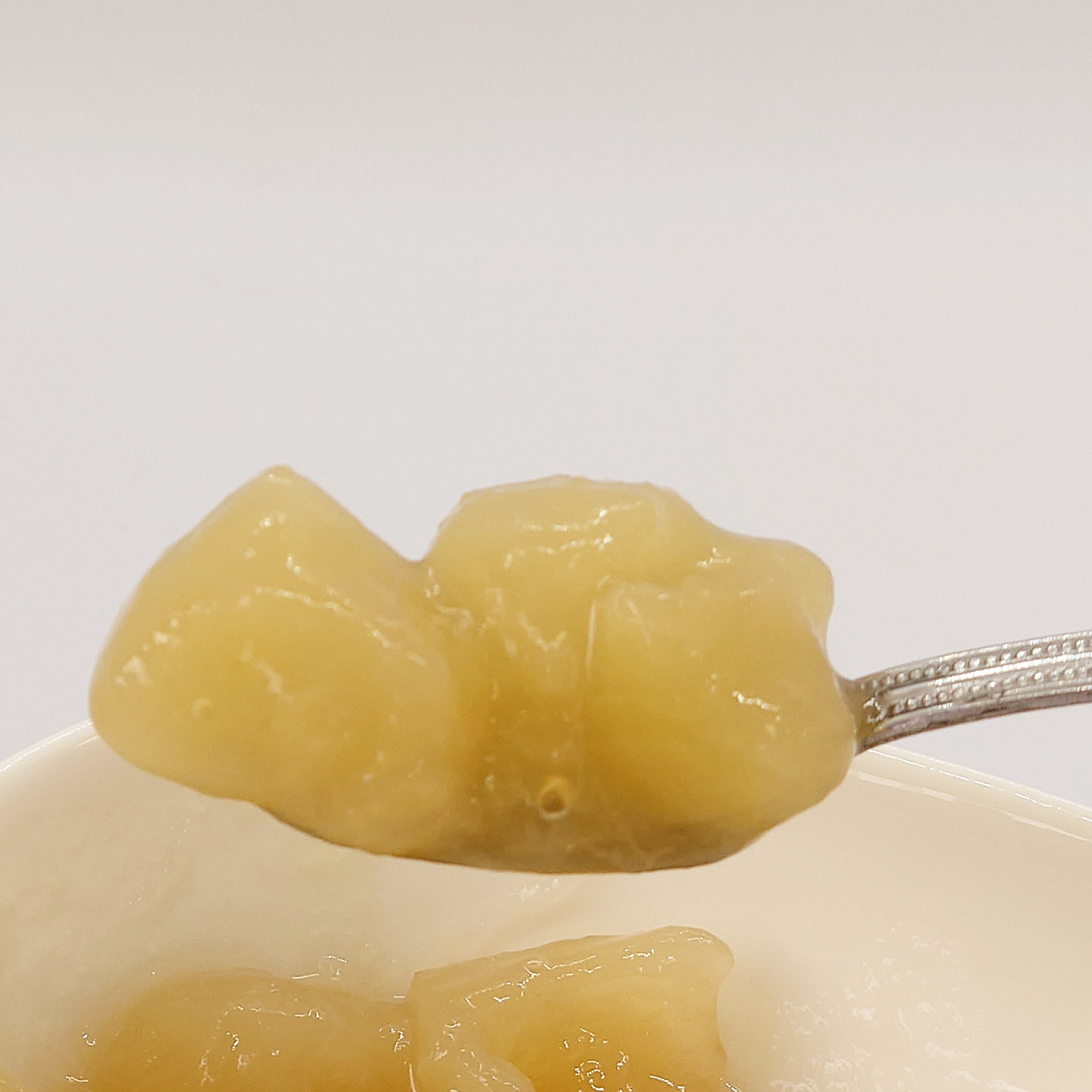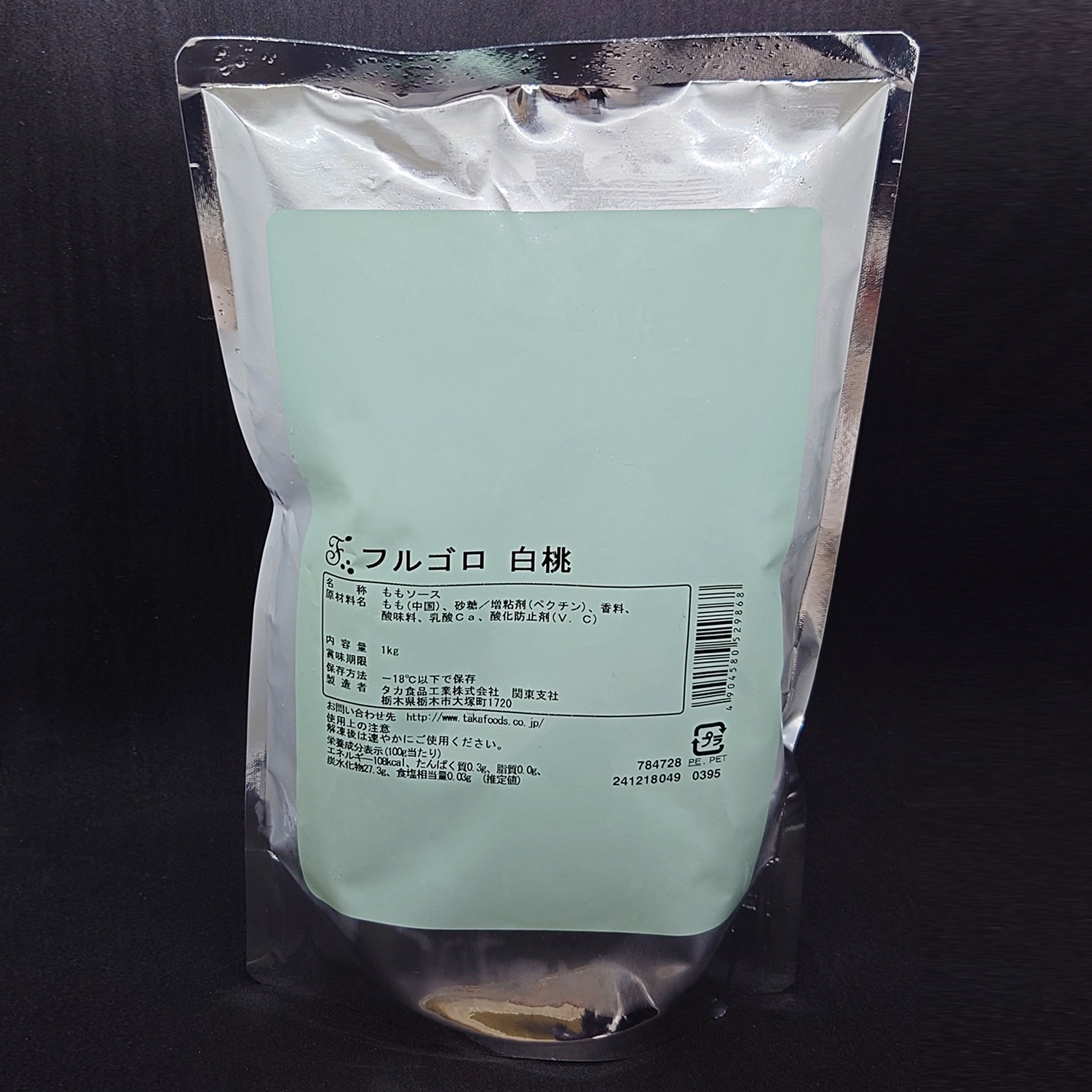 果肉がごろっと入ったももソース。低糖度でフルーツ本来の風味を味わえる果肉入りの冷凍フルーツソースです。