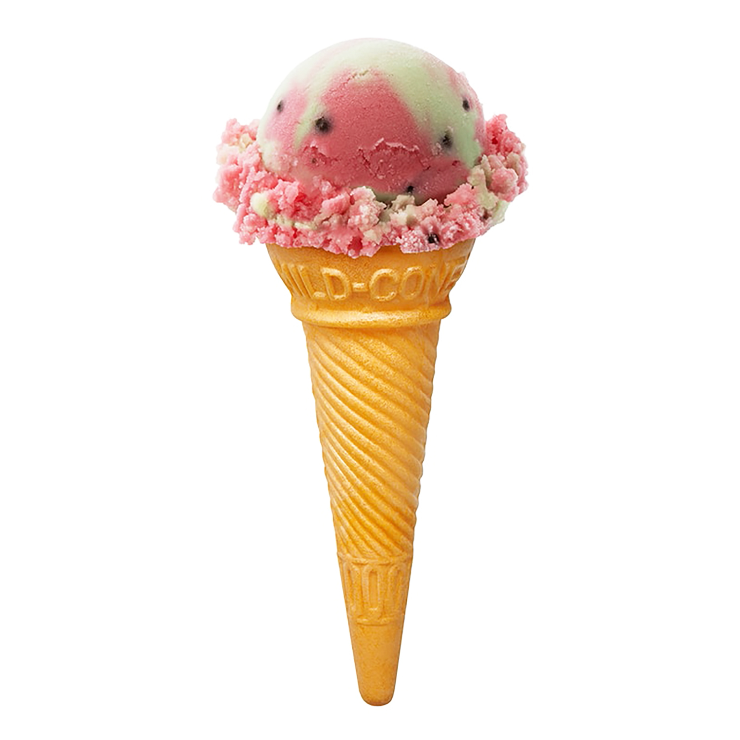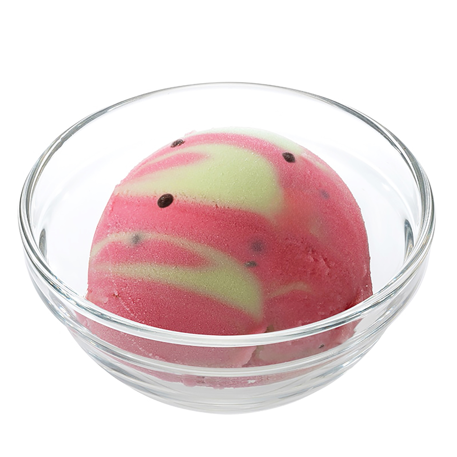スイカの実と皮をイメージした赤と緑のマーブル模様のアイス!チョコ種入りで見た目も食感も楽しめます。