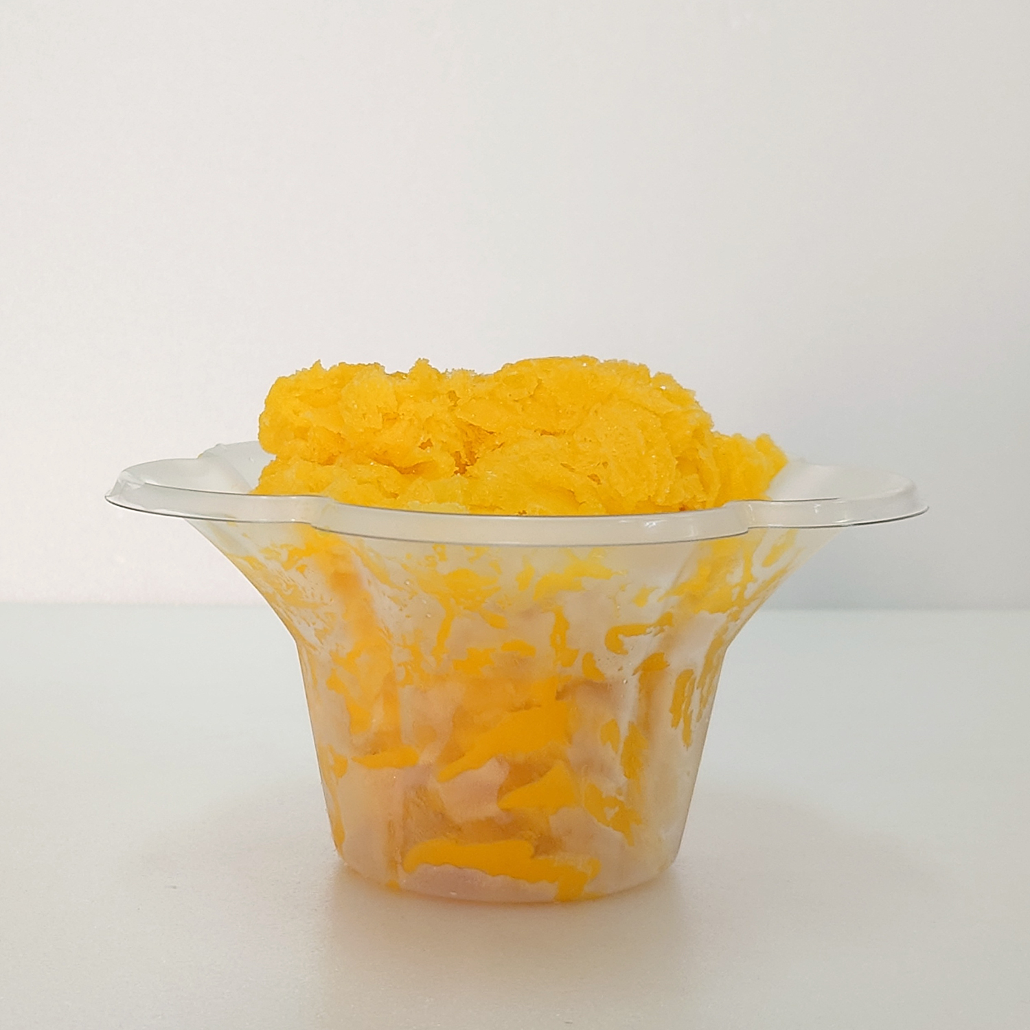 フタをはがしてSSB-1000・スノーブロッサムにセットし1パックをそのまま削れば、台湾風マンゴーかき氷の完成