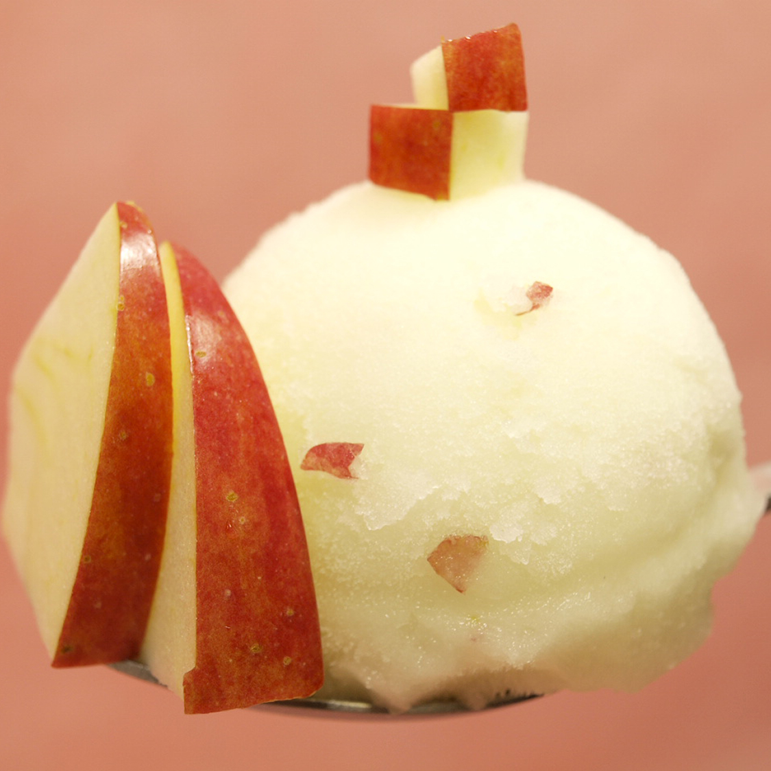 爽やかな酸味と甘酸っぱさのシャリシャリとした食感は、まるですりおろしりんごのようなみずみずしさです。りんごの赤い皮もワンポイント。